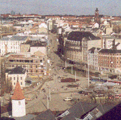 | Neues Rathaus Das neue Rathaus wurde zwischen 1912 und 1923 in einer Zeit großer Armut angebaut. Der Rathausturm ist 64 Meter hoch (siehe Bild oben) und bietet seit 1997 wieder einen Rundblick über die Stadt (374 Stufen führen nach oben). 1975 wurde die Eingangshalle modern aufgebaut und erhielt die Glasfront (wird heute übrigens nicht mehr als so schön gefunden). |